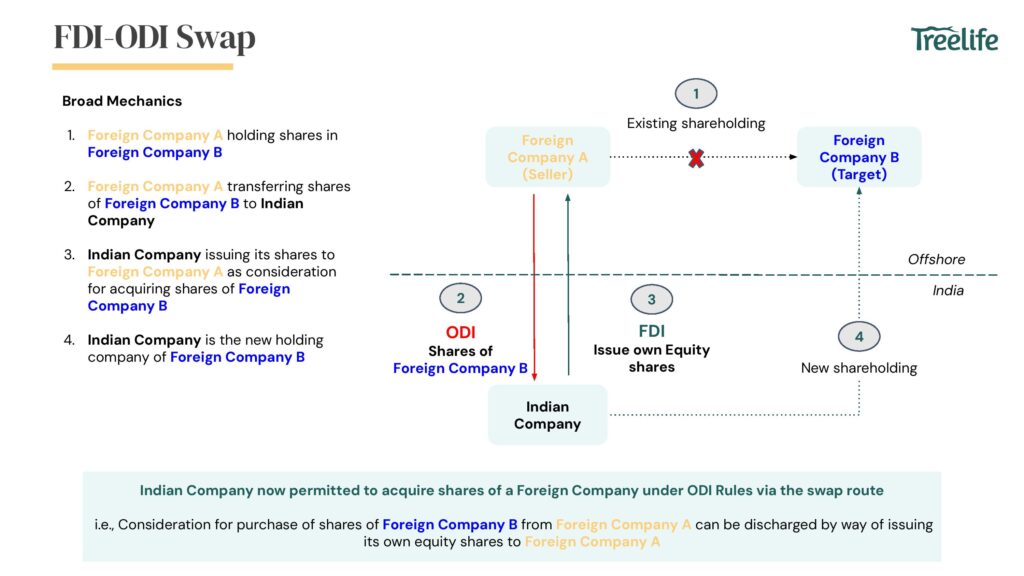 Indian Company now permitted to acquire shares of a Foreign Company under ODI Rules via the swap route.